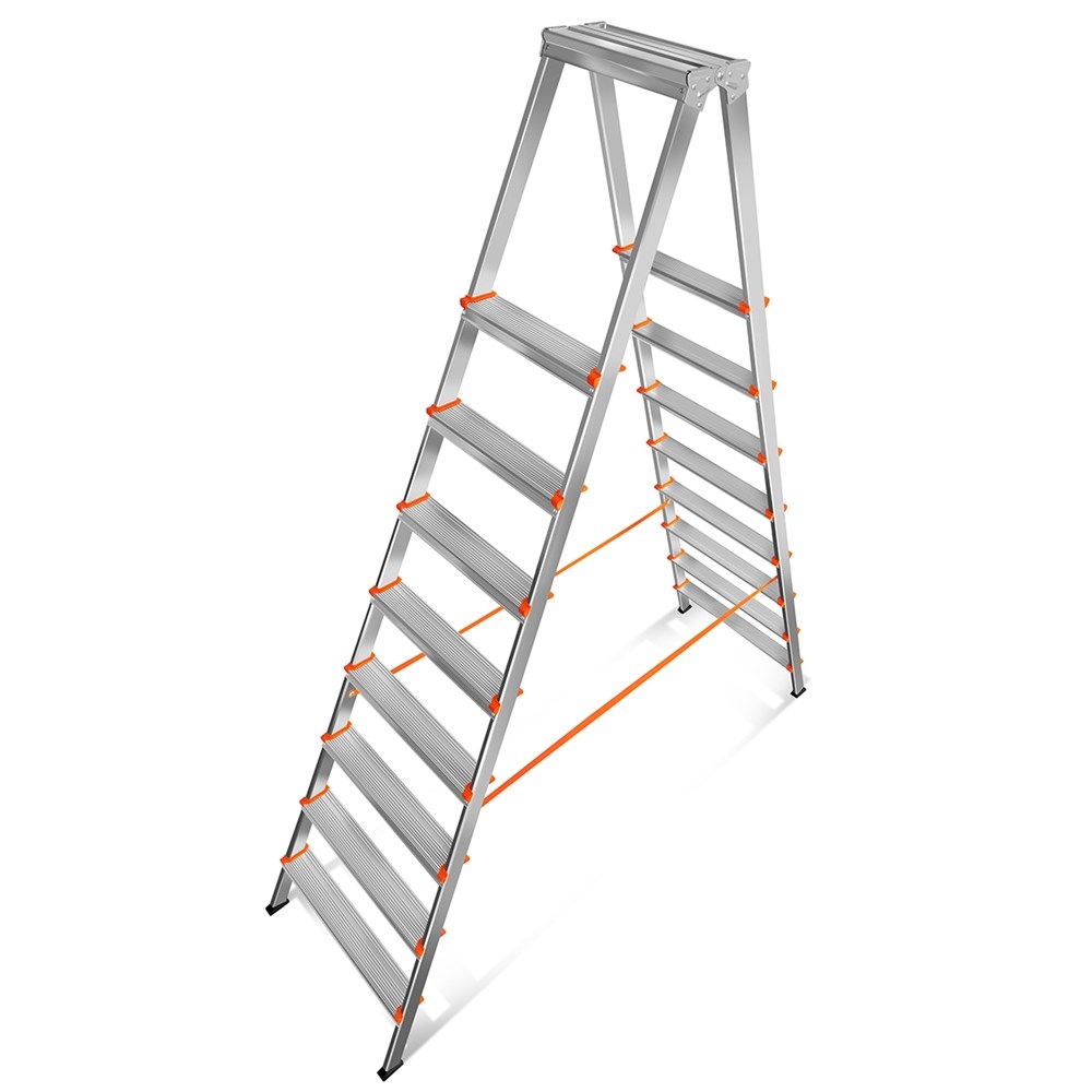 Алюминиевая стремянка Эйфель Мастер 80-208 предназначена для доступа к высоко расположенным объектам. Конструкция позволяет работать попеременно с разных сторон.