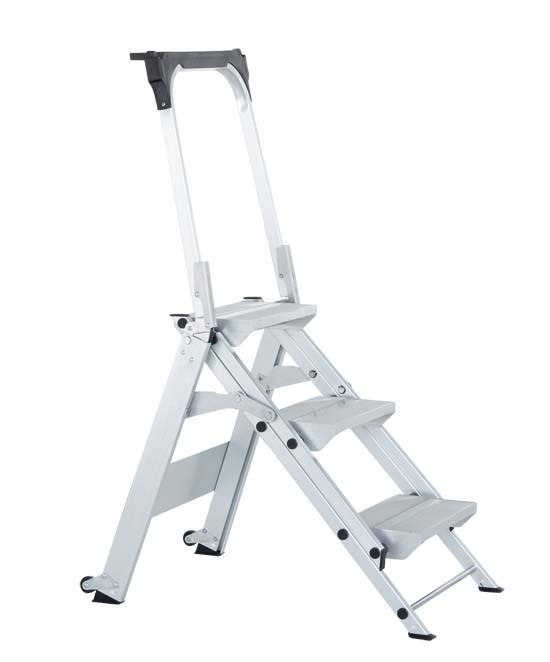 - поручень с практичным лотком (опция у стремянки с 3 ступенями, стандартно у стремянок с 4 и 5 ступенями);