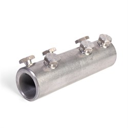 Болтовой соединитель КВТ 6СБЕ-800 изготовлен по ТУ 3449-009-97284872-2006. Предназначен для соединения любого типа кабельных жил: алюминиевых и медных, круглых и секторных, моножильных и многопроволочных. Каждый болтовой соединитель является мультиразмерным и рассчитан на диапазон сечений кабеля. Х-образное угловое расположение болтов соответствует европейским стандартам и гарантирует механическую прочность соединения. Эксцентриковое отверстие под кабельную жилу в корпусе соединителя. Рабочее напряжение: до 10 кВ. Материал корпуса и болтов: специальный алюминиевый сплав. Крепление на жиле осуществляется методом завинчивания болтов со срывной головкой. Болтовые головки срываются при достижении установленного момента, обеспечивающего оптимальные механические и электрические свойства контактного соединения. Конструкция болтов имеет несколько проточек — срывных «шеек», благодаря чему срыв головки происходит вровень или ниже поверхности соединителя. Соединители имеют внутреннюю конструктивную перегородку, определяющую глубину захода кабельной жилы. Рифленая накатка на внутренней поверхности цилиндрической части соединителей увеличивает площадь и механическую прочность контактного соединения. На каждом соединителе выбита маркировка с указанием номинального диапазона сечений кабеля и логотипа производителя. Инструмент для монтажа: набор НМБ-6 (КВТ). Рекомендованы для монтажа термоусаживаемых муфт и оснащения ремонтно-аварийных служб. Диапазоны применения болтовых наконечников и соединителей совпадают с диапазонами термоусаживаемых кабельных муфт, что делает их идеальным дополнением для комплектации наборов кабельных муфт.