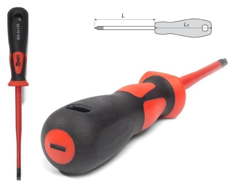 - утопленная в лезвие отвертки изоляция делает возможным монтаж винтов с глубокой посадкой;