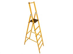 Диэлектрическая стремянка ЗЭП 9 ступеней ССС-3,9-55 - наиболее традиционный и самый распространенный вид стремянок. Проста и удобна в эксплуатации. Рабочая площадка имеет фиксатор из нержавеющей стали. Может использоваться как внутри помещений, так и на открытом воздухе, в суровых климатических условиях. Для изготовления тетивы используется диэлектрический стекловолоконный профиль прямоугольного сечения. На верхних концах тетив установлены пластиковые (ПВД/ПНД) заглушки, на нижних – противоскользящие эластополимерные опоры. Нижняя ступень имеет дополнительное усиление в виде металлических распорок, что повышает прочность конструкции. Ступени изготовлены из профиля 36х26 мм с противоскользящими ребрами.