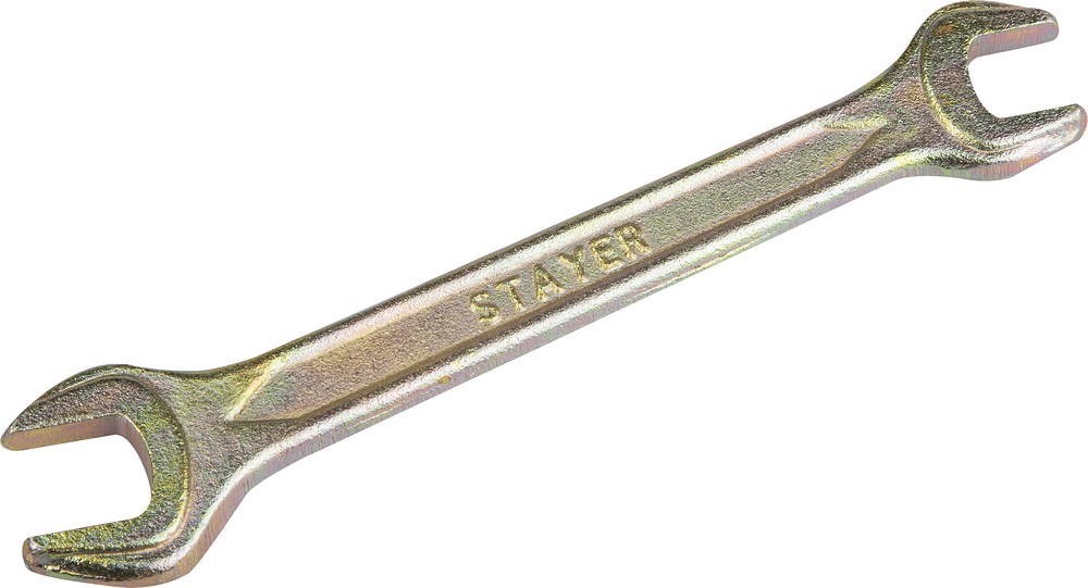 Гаечный ключ Stayer "ТЕХНО" рожковый, 24х27мм 27020-24-27 предназначен для работы с шестигранным крепежом любой разновидности. Имеет цинковое покрытие (желтый цинк) для защиты от коррозии. Изготовлен в соответствии с требованиями стандарта DIN-895. Кованый, изготовлен из высококачественной углеродистой стали марки С45, оцинкован.Характеристики