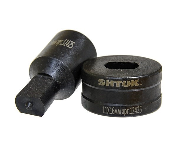 - комплект насадок представляет из себя набор пуансон-матрица овальной формы и размером 11х16 мм;
