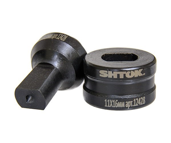 - комплект насадок представляет из себя набор пуансон-матрица овальной формы и размером 11х16 мм;