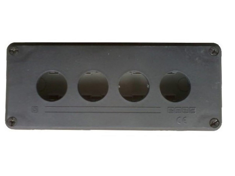 Корпус поста EMAS 4-кнопочный черно-серый P4BOS предназначен для предупреждающей и аварийной сигнализации при размещении ее в стационарных установках. Изготовлен из высококачественного пластика, армированного стекловолокном.