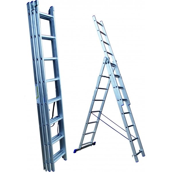 Лестница трехсекционная МИ Стандарт 13 ступеней - это универсальная лестница, которой можно пользоваться как стремянкой в саду или при строительстве и ремонте загородного дома, так и в качестве приставной конструкции с возможностью осуществлять работу на высоте до 12 метров. Дополнительное преимущество: в этом типе первую секцию можно использовать отдельно, как стандартную алюминиевую односекционную лестницу, то есть по факту вы получаете две лестницы и стремянку.