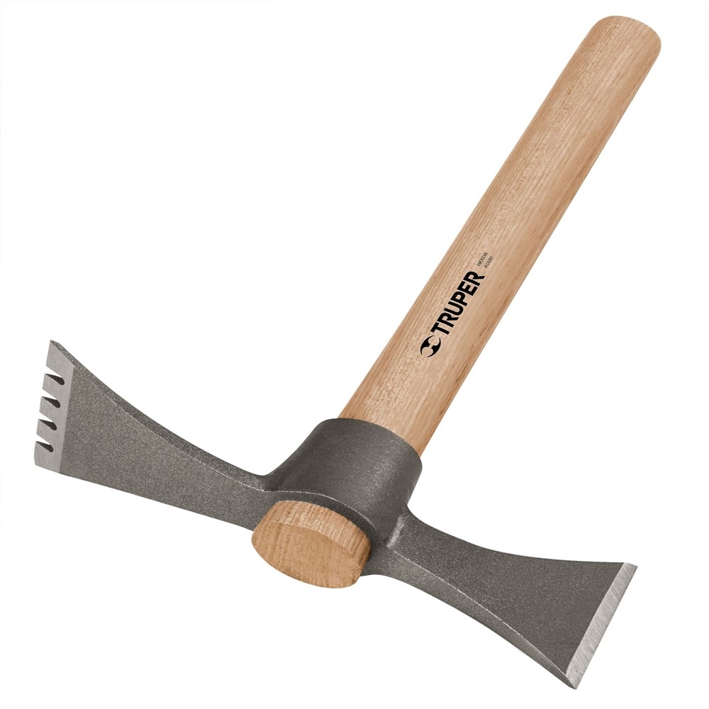 Мотыга-топор Truper MART-TH с деревянной ручкой 19817 предназначена для работы с твёрдым и каменистым грунтом, а также для рубки деревьев и кустарников. Двусторонняя голова сочетает топор и заострённую мотыгу с зубьями. Изготовлена из кованой хром-марганцевой стали, которая в 3 раза более износостойкая по сравнению с аналогами. Рукоятка выполнена из высококачественной полированной древесины с защитным покрытием и надёжным креплением головы. Сделано в Мексике.