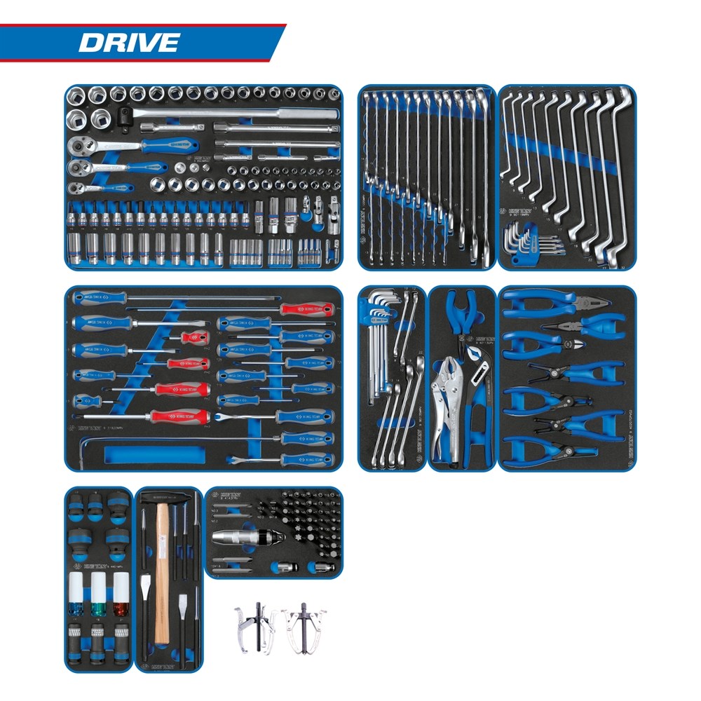 Набор инструментов "DRIVE" для тележки, 10 ложементов, 251 предмет KING TONY 934-251MRVD TONY