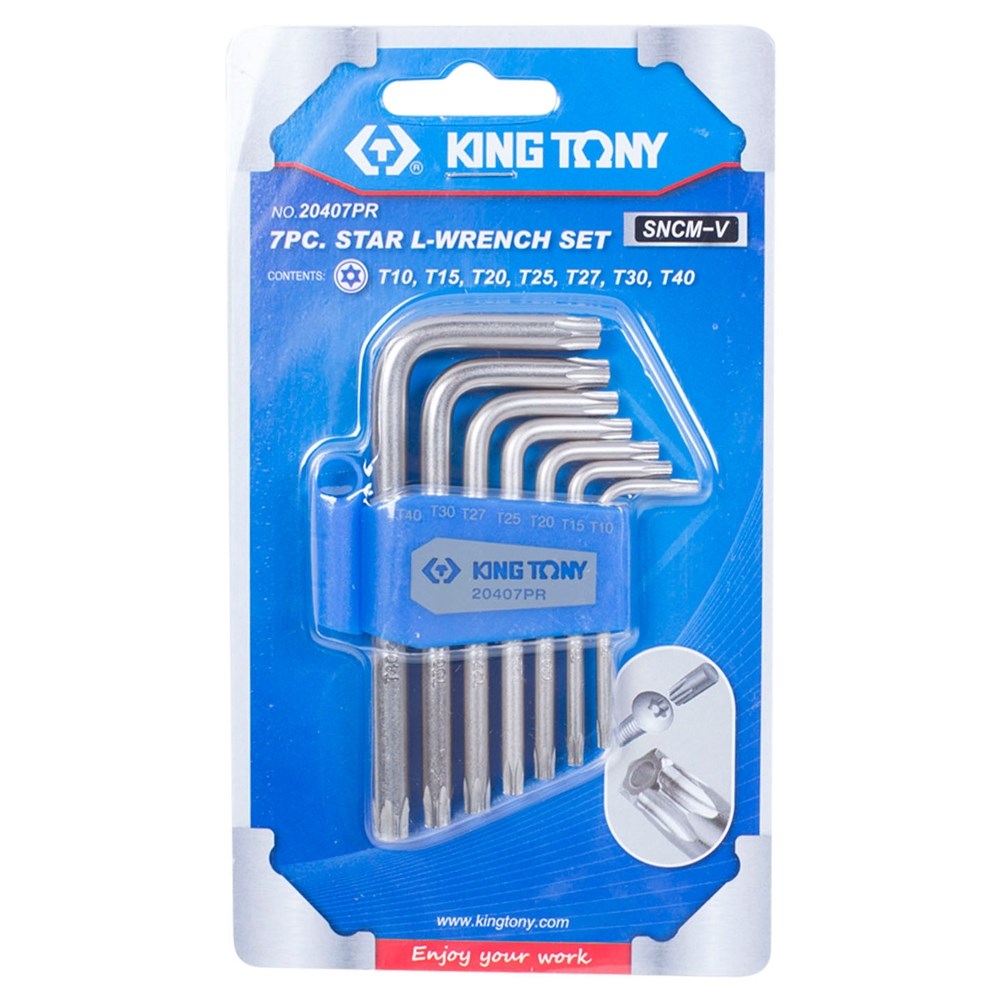 Набор Г-образных Torx, T10H-T40H, короткие, с отверстием, 7 предметов KING TONY 20407PR TONY