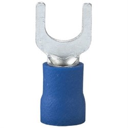 Наконечник вилочный изолированный Передовик НВИ 2,5/5мм 26320 предназначен для оконцевания опрессовкой многопроволочных медных проводов и последующего крепежа наконечников к клеммам электрического оборудования на основе винтовой фиксации. Не требует полного демонтажа крепежного соединения. Для быстрых перекроссировок — достаточно лишь ослабить винтовую фиксацию. Материал изоляции: самозатухающий ПВХ. Класс V-0 по UL94. Термостойкость изоляции: 75 C. Материал наконечника: медь марки М1. Покрытие наконечника: электролитическое лужение. Максимальное напряжение: 690 В.