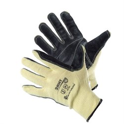 Перчатки Элит+ Ампаро 497907 - трикотажные перчатки со спилковым наладонником для защиты рук от механических воздействий. Перчатки «Элит» представляют собой бесшовную трикотажную основу, на которую в области ладони и пальцев пришит наладонник из кожаного спилка. У перчаток «Элит+» защита из кожаного спилка продлена на кончики пальцев. Основа перчаток выполнена из термостойкой параарамидной пряжи, которую характеризует высочайшая прочность, легкость и хорошее сопротивление механическим воздействиям. Наладонник из спилка КРС обеспечивает надежную защиту ладони пользователя от механических воздействий (истирание, порез, прокол), пришит к основе метаарамидными нитками, стойкими к истиранию и высоким температурам.Перчатки рекомендованы при проведении ремонтных, сборочных, такелажно-погрузочных, строительных и монтажных работ, а также работ общего назначения.