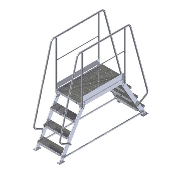 Переходный мостик ALUR МП-0,54х1,0х1,5 обеспечивает безопасный переход над конвейерными лентами, используется для обслуживания разнообразного оснащения на складах, в магазинах, на производстве.