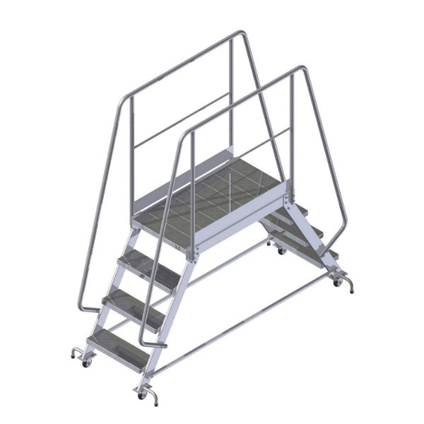 Переходный мостик на колесах с упорами ALUR МП-0,54х1,5х2,25КУ обеспечивает безопасный переход над конвейерными лентами, используется для обслуживания разнообразного оснащения на складах, в магазинах, на производстве.