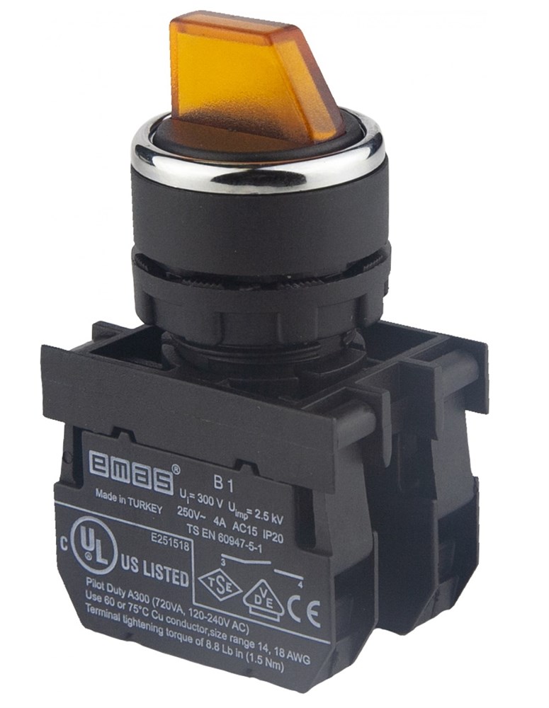 Переключатель EMAS 2-0-1 с фиксацией в 1 положении, желтый, 2НО B101SL31S