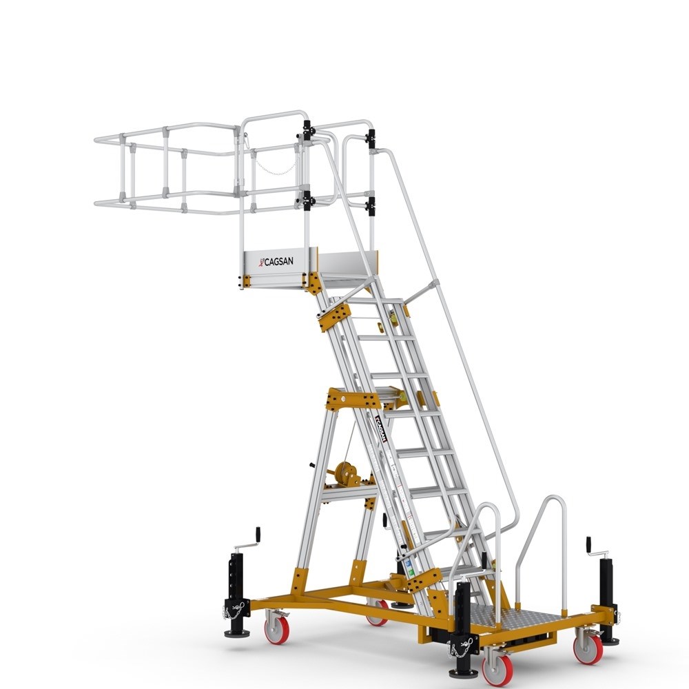 Регулируемая платформа-трап CAGSAN YP250 2,5 м изготавливается под заказ. Назначение: обслуживание цистерн, промышленного оборудования, авиационного и железнодорожного транспорта. Регулировка высоты с помощью ручной лебедки.
