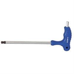 Конструкция данного ключа имеет несколько особенностей. Форма ключа Г-образная, имеется две рабочих части одинакового размера, короткая и длинная, которые можно использовать в зависимости от ситуации. Также предусмотрена эргономичная пластиковая ручка с выемками под пальцы, которая позволяет прочно и удобно удерживать ключ во время работы. Длинная часть шестигранника оснащена шаровым наконечником, что расширяет сферу применения ключа, позволяя выкручивать винты под углом и в труднодоступных местах.