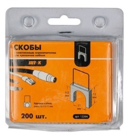 Скобы для крепления кабеля ШТОК с ограничителем 12204 помогут легко, быстро и надежно зафиксировать на различных поверхностях кабель с круглым или овальным сечением. Имеют пластиковый ограничитель.