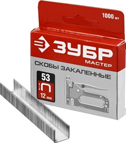 Скобы Зубр Мастер тип 53, 12мм, 1000 шт 31625-12 - надежный расходный материал для строительных степлеров при выполнения работ по фиксации материала к поверхности дерева, ДВП, пластика и т.д.