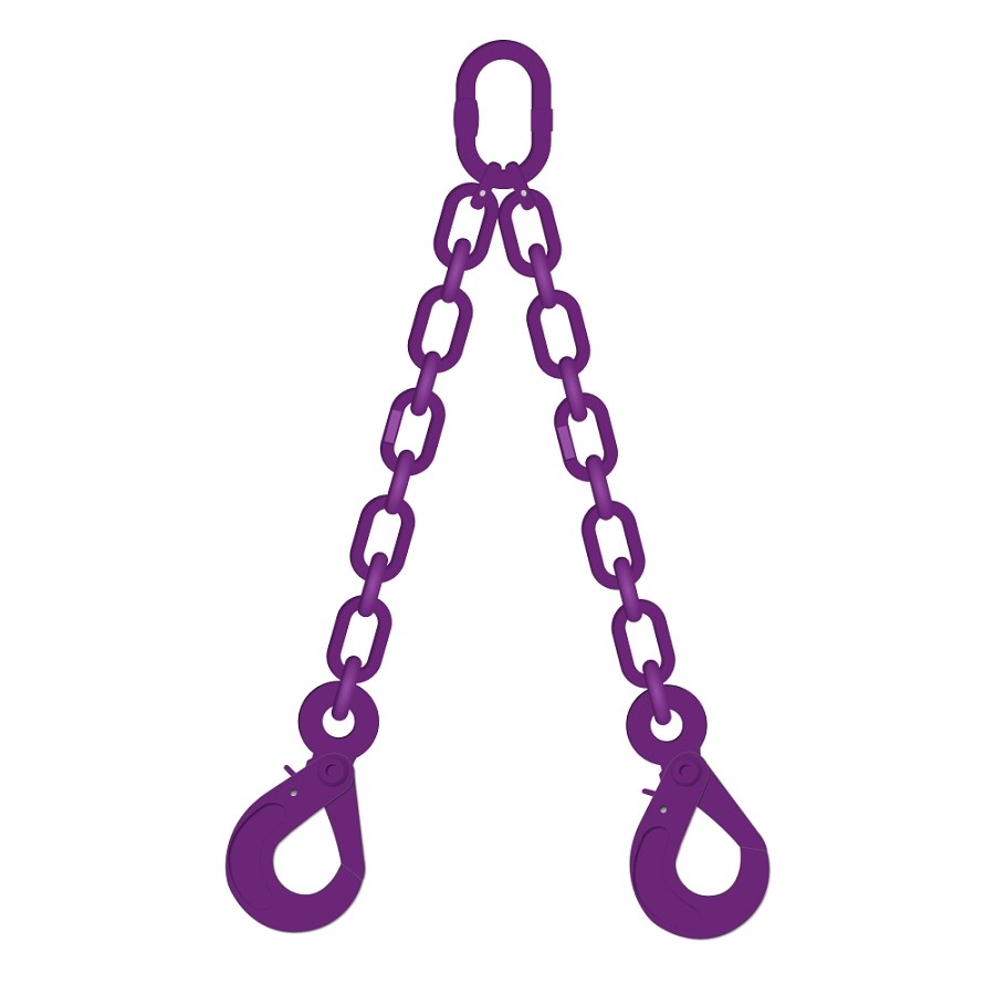 Строп цепной TOR 2СЦ г/п 5,3 т 3,0 м крюки самозакрывающиеся состоит из двух ветвей, соединенных овальным звеном, с грузозахватными крюками на концах.