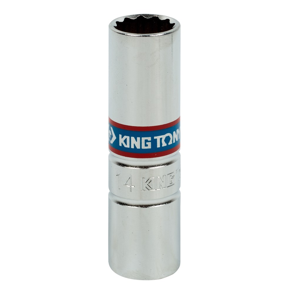 Головка свечная двенадцатигранная 1/2", 14 мм, L = 70 мм, резиновый фиксатор KING TONY 463014RC TONY
