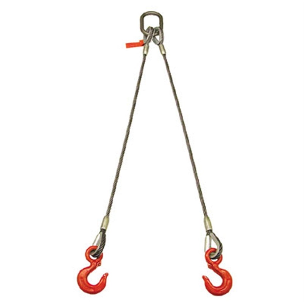 Канатный строп TOR 2СК г/п 10,0 т 7,5 м 1007287 чаще всего применяется при работе с длинными грузами для крепления в двух точках опоры. Обжим петель может происходить как с помощью зажима, так и методом заплетки. В петлю может быть установлен коуш для защиты от излома и стирания.