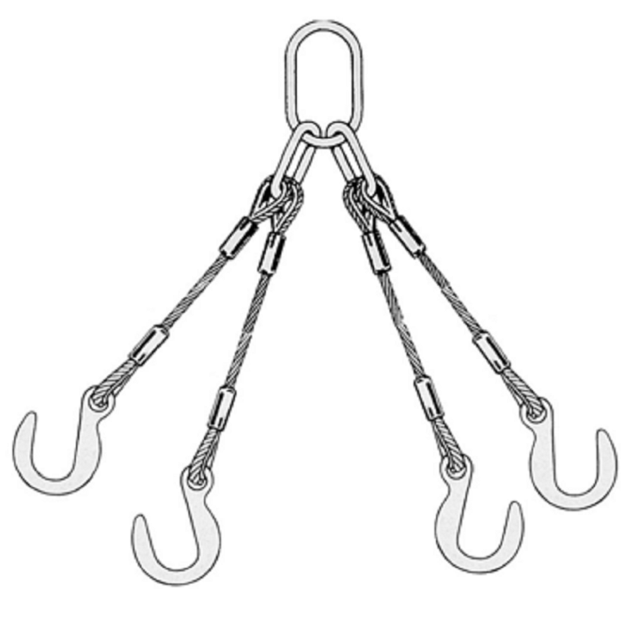 Канатный строп TOR 4СК г/п 2,0 т 3,0 м с крюками с широким зевом 1024808 чаще всего применяется при работе с габаритными грузами для крепления в четырёх точках опоры. На профессиональном сленге эта позиция называется "канатный паук". Температурный режим работы без потери свойств составляет от -40 до +100 С.