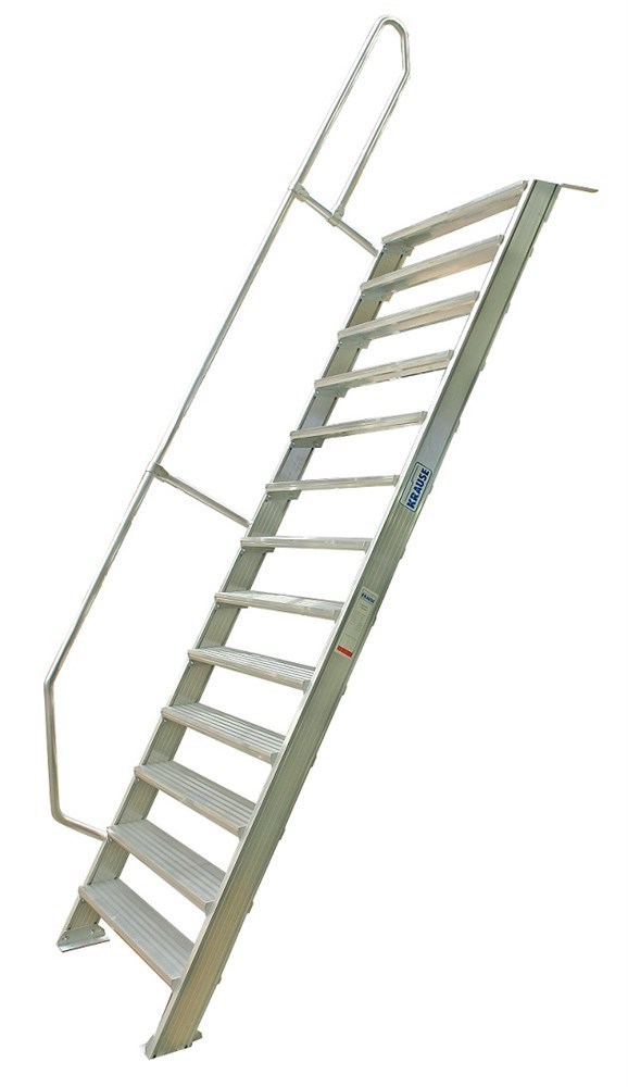 Алюминиевый трап Krause стационарный, 1000мм 4 ступени 60° 823533 поставляется с одним поручнем, правым или левым, по выбору, второй поручень предлагается за отдельную плату. Прочный алюминиевый трап для индивидуальных целей в соответствии с DIN EN ISO 14122. Ширина ступеней: 1000мм. Глубина ступеней: 175 мм. Ступени изготовлены из рифленого алюминия. Под заказ - комплектация ступенями из решетки или перфорированного листового металла. Для крепления верхней части трапа предлагается на выбор опорный уголок или крепежная планка. Нижняя часть фиксируется двумя уголками напольного крепления, размещенными на боковине. Изделие поставляется в виде предварительно смонтированных узлов. В соответствии с требованиями стандарта DIN EN ISO 14122-4 рекомендуется в целях безопасности преимущественно использовать трапы с наклоном 45 градусов. Использовать трапы с наклоном 60 градусов только в том случае, если условия выполнения работ не допускают иного выбора. Tрапы с иными значениями угла наклона, ширины ступени, другим типом поверхности поставляются под заказ в качестве специальных версий. Изготовлено согласно DIN EN ISO 14122, при высоте более 4000 мм требуется промежуточный помост.