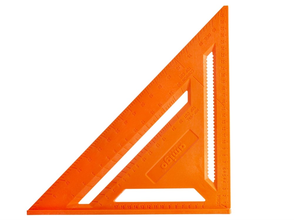 - Разметка на двух сторонах: линейка, шкала разметки наклонных стропил, транспортир, рейсмус, геодезический уклон.