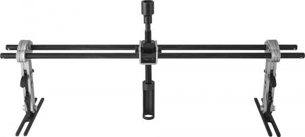 Универсальный рассухариватель клапанов с поворотными стойками Jonnesway AI020131 изделие, аналогичное по назначению, но отличающееся от AI020032 возможностью изменения угла наклона толкателя тарелки возвратной пружины клапана за счет изменения угла наклона стоек осей рассухаривателя, что делает инструмент более удобным при использовании во время обслуживания двигателей с системой газораспределения типа CVH, клапана которой установлены V-образно. Дополнительно, использование рассухаривателя подразумевает возможность прерывания рабочего процесса в любой момент за счет подачи толкателя с помощью ходового винта. Инструмент снабжен двумя толкателями с большими окнами для легкого извлечения сухарей. Диаметр толкателей 22 мм, длина 75 и 125 мм.