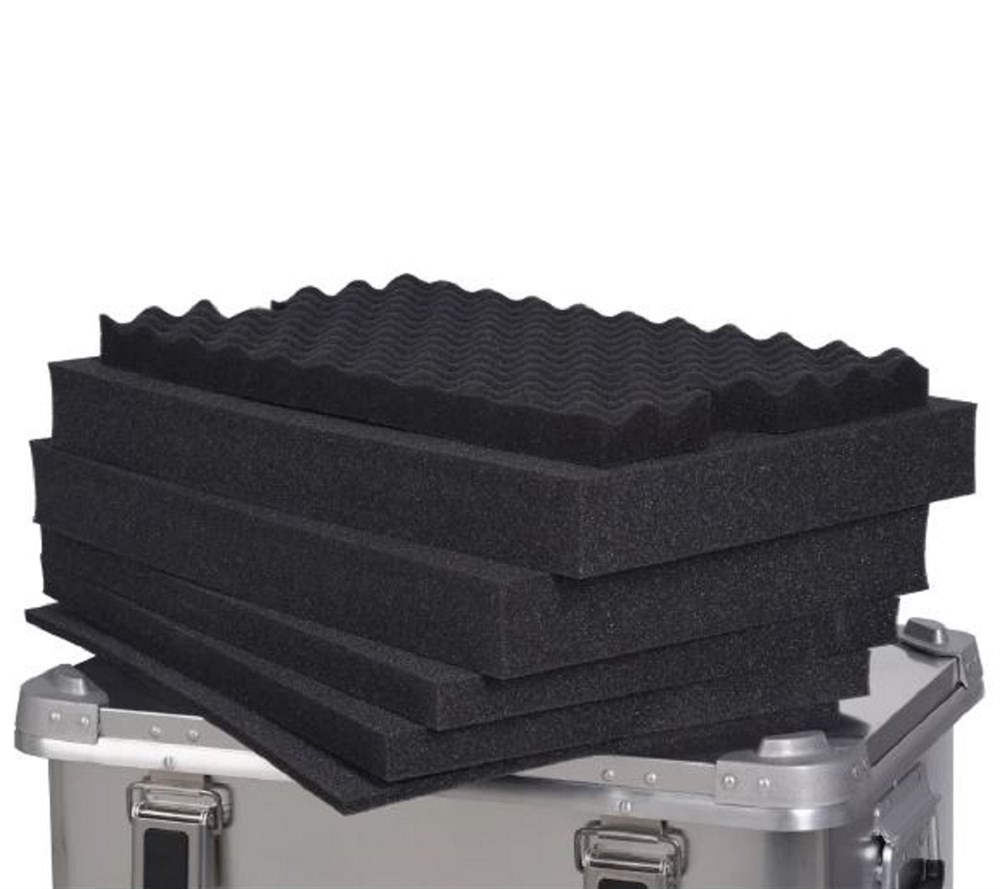 Адаптивный ложемент изготовлен из поролоновых листов с плотностью 22 кг/м³. Листы, предварительно насеченные на кубики, позволяют без использования дополнительных инструментов формировать выемки под оборудование, просто вытаскивая необходимые кубики. Самоклеящаяся бугристая подложка для крышки обеспечивает дополнительное удобство и надежность.