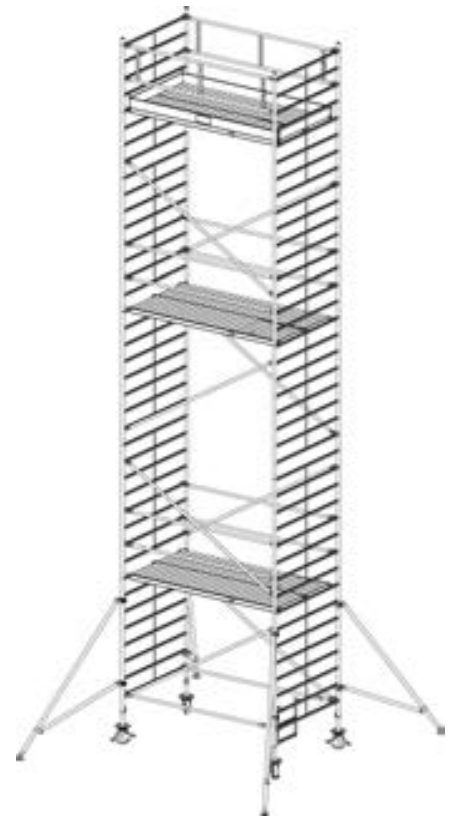 Алюминиевая вышка-тура Krause Stabilo 5000 11,3м 749116 прошла проверку TUV, предельная нагрузка 200 кг/м2 (группа помостов 3) в соответствии с DIN EN 1004. Идеально подходит для рабочих высот до 14,00 м. Платформы легко навешиваются между перекладинами (шаг - 25 см). Исключаются трудоемкие операции переналадки и демонтажа. Площадка размером около 4,00 м2 безопасна и достаточно просторна для людей и материалов. Удобные вертикальные рамы легко монтируются одним человеком, профилированные перекладины обеспечивают безопасность подъема и спуска. Угловые опоры входят в комплект поставки. Длина помоста: 2,50 м. Ширина помоста: 1,50 м.