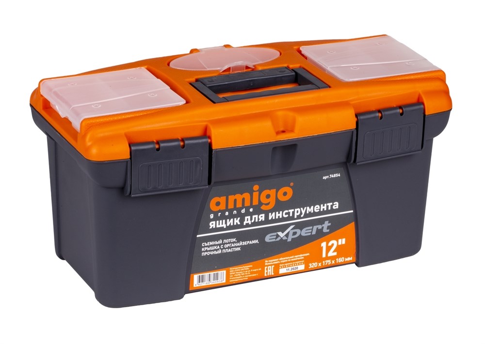 | Ящик для инструмента пластиковый Amigo 12" (32х17,5х16 см) 74854 | 12 | 320x175x160 | пластиковые защелки | ударопрочный пропилен | |